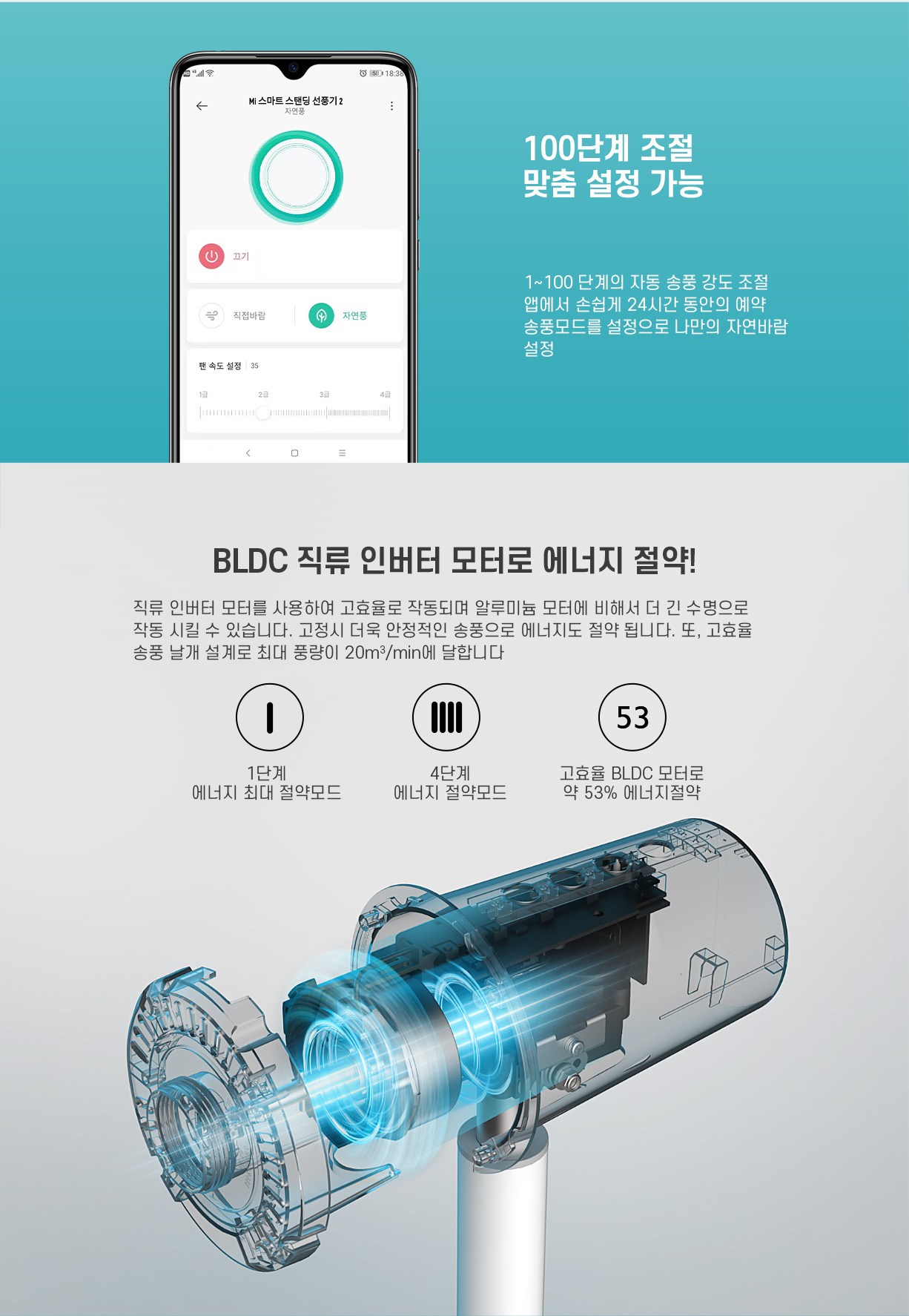 스마트폰 앱으로 바람세기 조절 가능