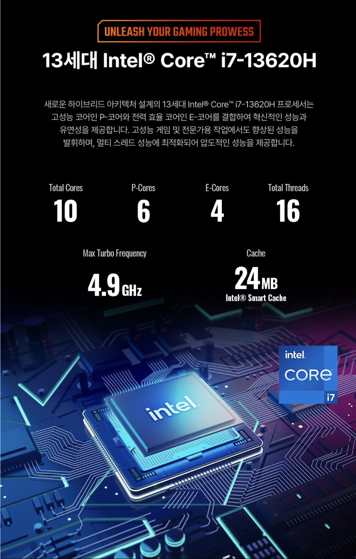 - CPU: 인텔 13세대 i7-13620H (10코어 16스레드)