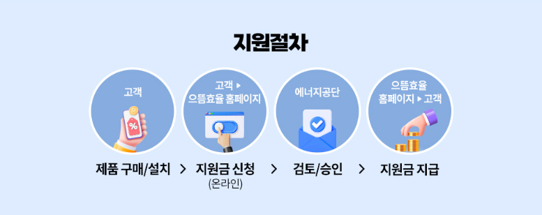 - ✔ 신청은 설치 완료 후 영수증·사진 제출 → 에너지공단 승인 → 계좌로 환급