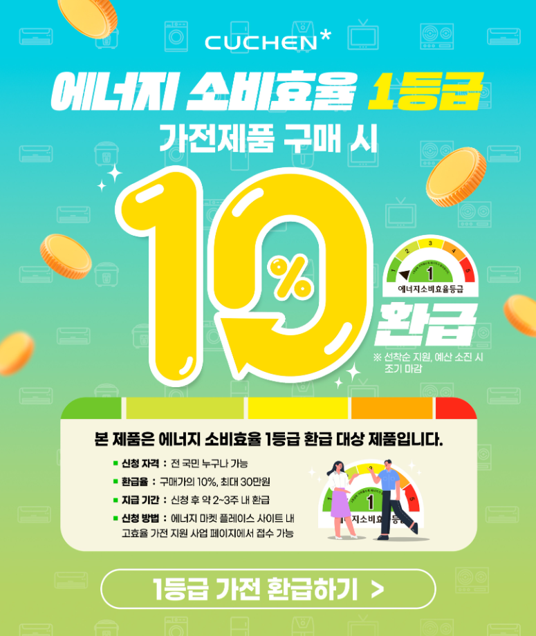 - ✔ 쿠팡에서 [10% 환급가전] 마크가 붙은 제품을 먼저 확인